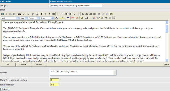 The Auto Responders in the Internet Marketing system is really the Email Marketing System part of our Internet Marketing System.