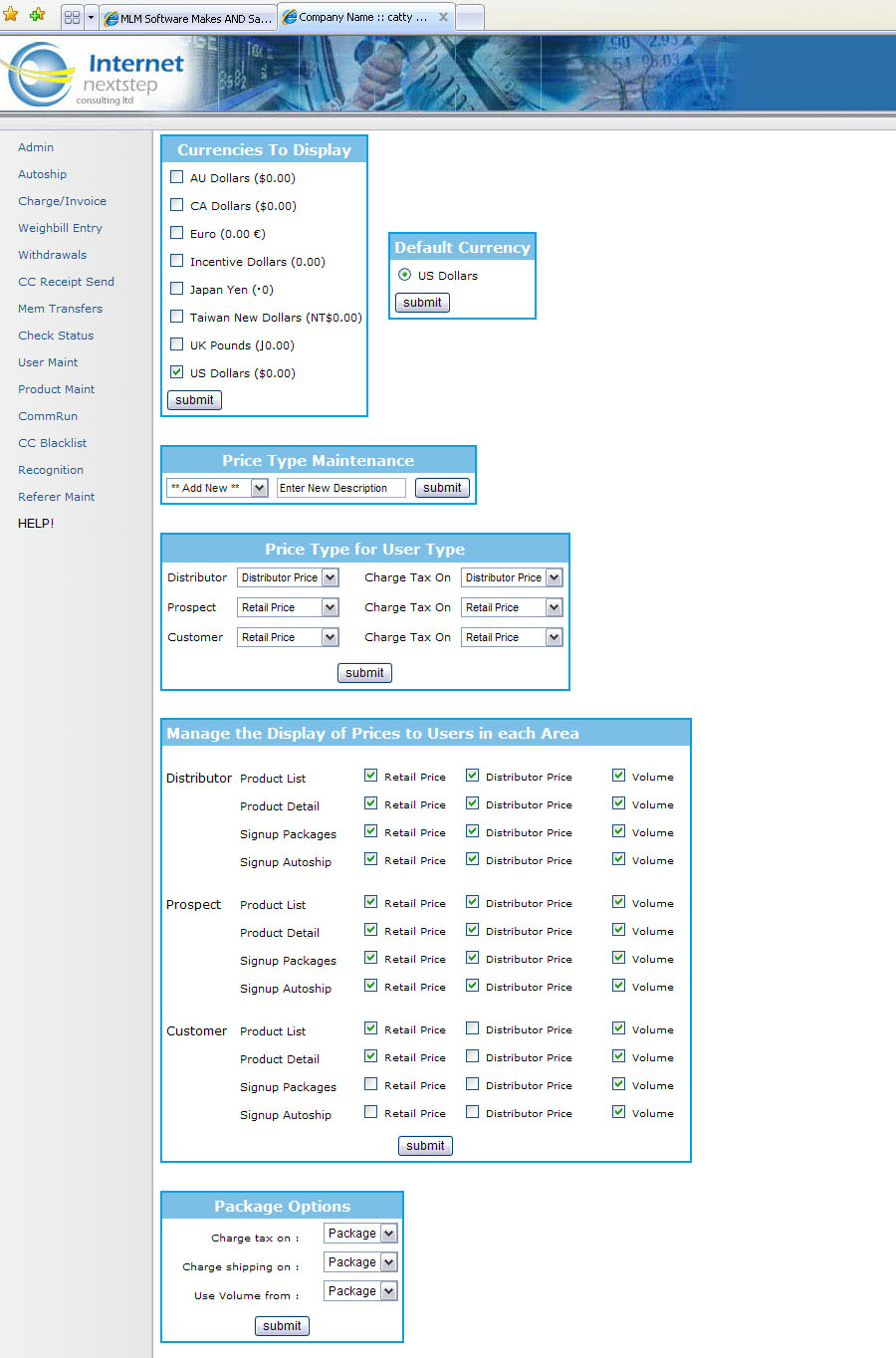 First select the currencies you wish to operate in. if there is a currency you wish to use that is not on the list, please contact INS to have it added.